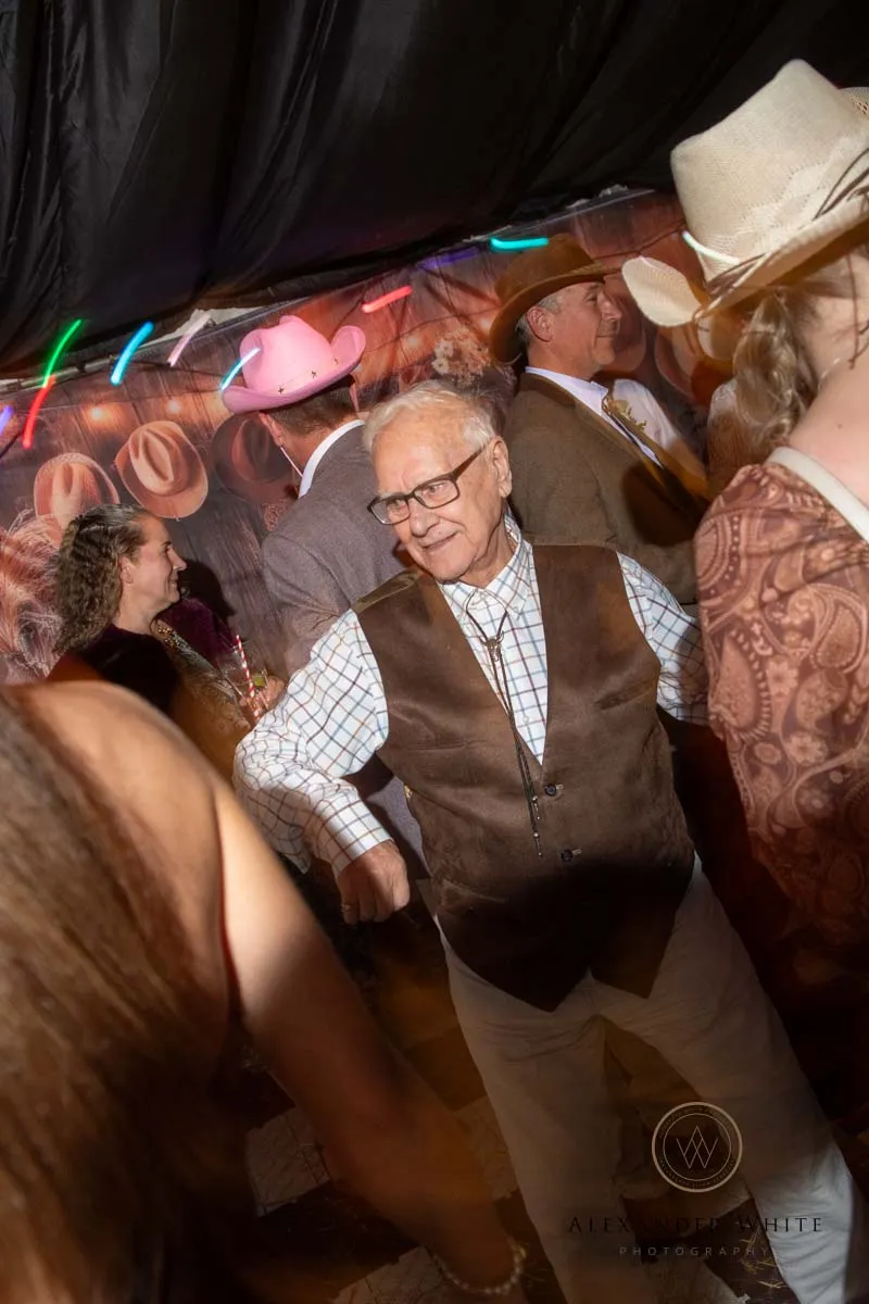 While the ceremony was small and intimate, the evening celebrations brought together a wider group of friends for a proper country ho-down. There was line dancing, laughter, and an infectious energy that carried on well into the evening.